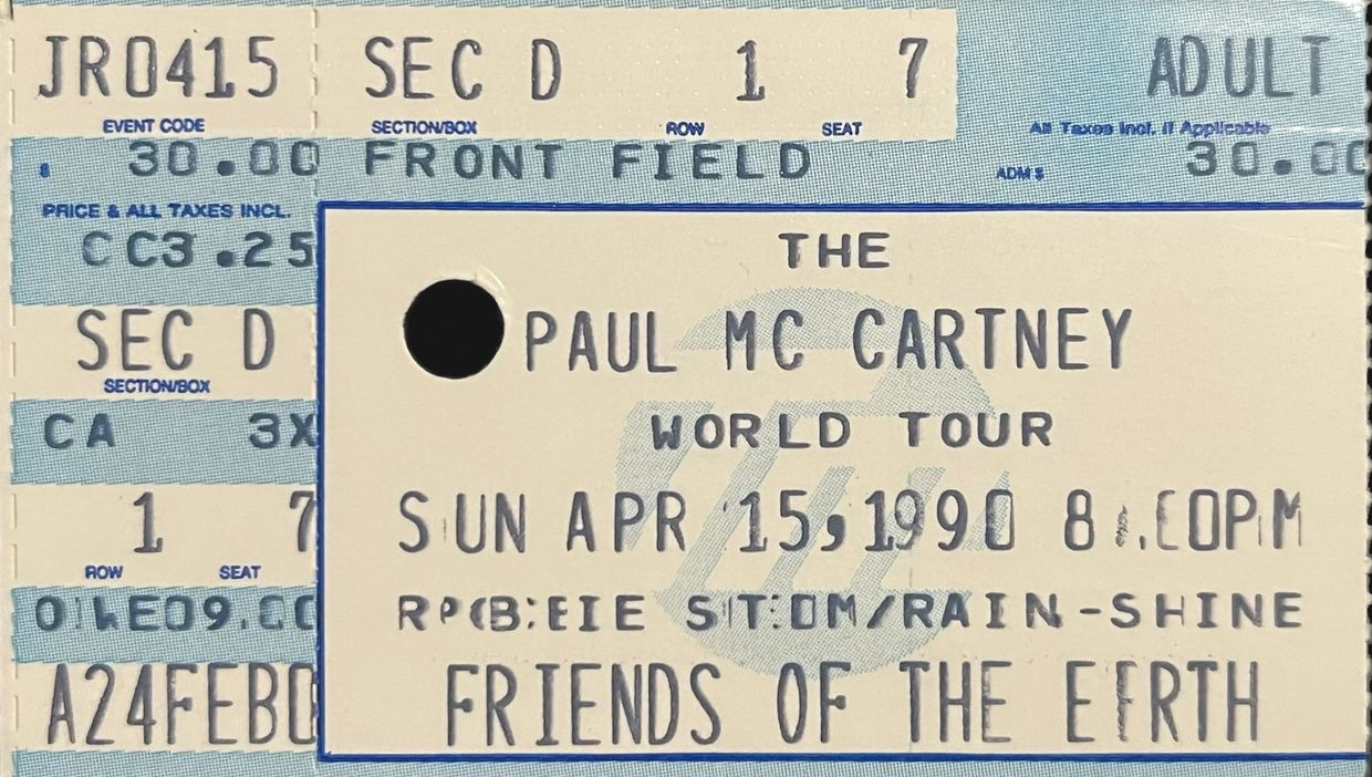 181. Paul McCartney at Joe Robbie Stadium in Miami, Florida on Sunday, April 15, 1990 at 8:00 P.M. for $30.00