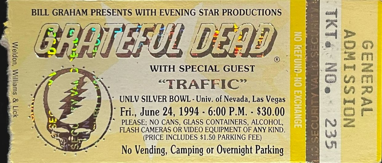 415. Grateful Dead ; Traffic at the UNLV Silver Bowl in Las Vegas, Nevada on Friday, June 24, 1994 at 6:00 P.M. for $30.00