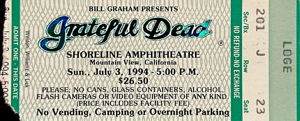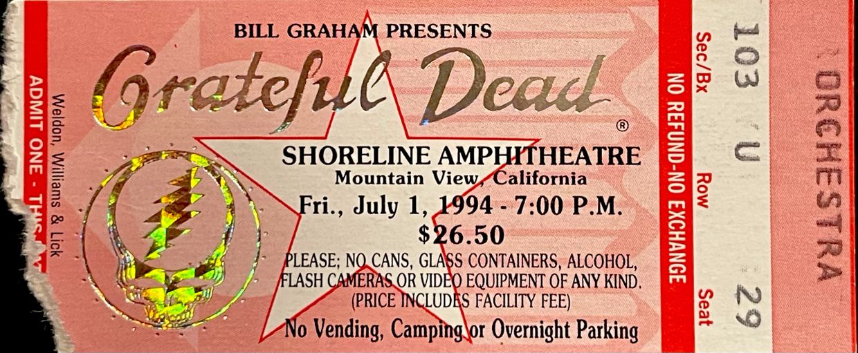 420. Grateful Dead at the Shoreline Amphitheatre in Mountain View, California on Sunday, July 3, 1994 at 5:00 P.M. for $26.50