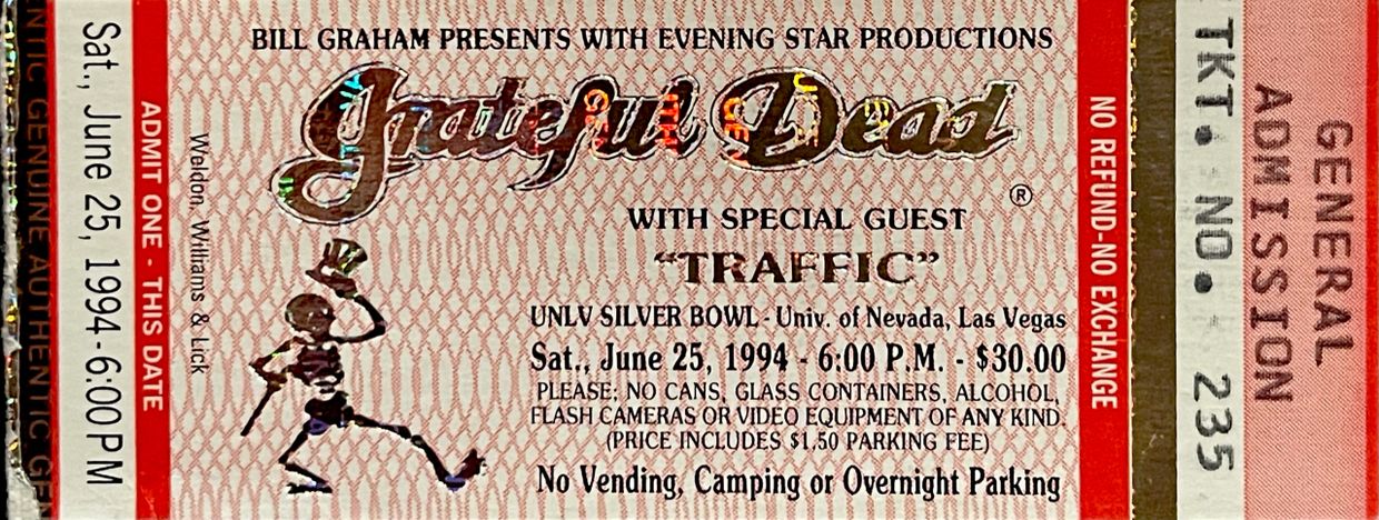 417. Grateful Dead ; Traffic at the UNLV Silver Bowl in Las Vegas, Nevada on Sunday, June 26, 1994 at 6:00 P.M. for $30.00