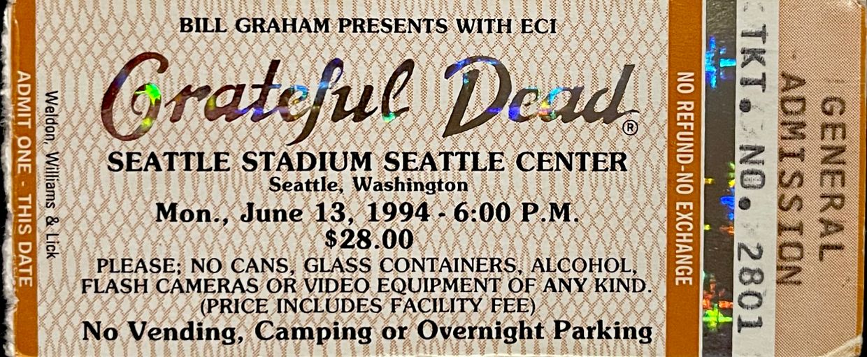 410. Grateful Dead at the Seattle Stadium in Seattle, Washington on Monday, June 13, 1994 at 6:00 P.M. for $28.00