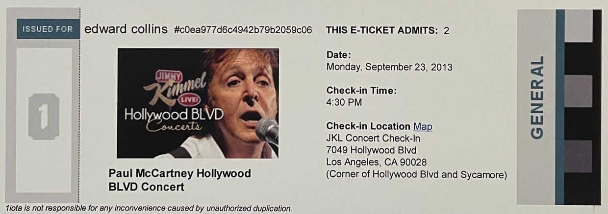941. Paul McCartney at Jimmy Kimmel Live on Hollywood Boulevard in Los Angeles, California on Monday, September 23, 2013 at 7:15 P.M. for free